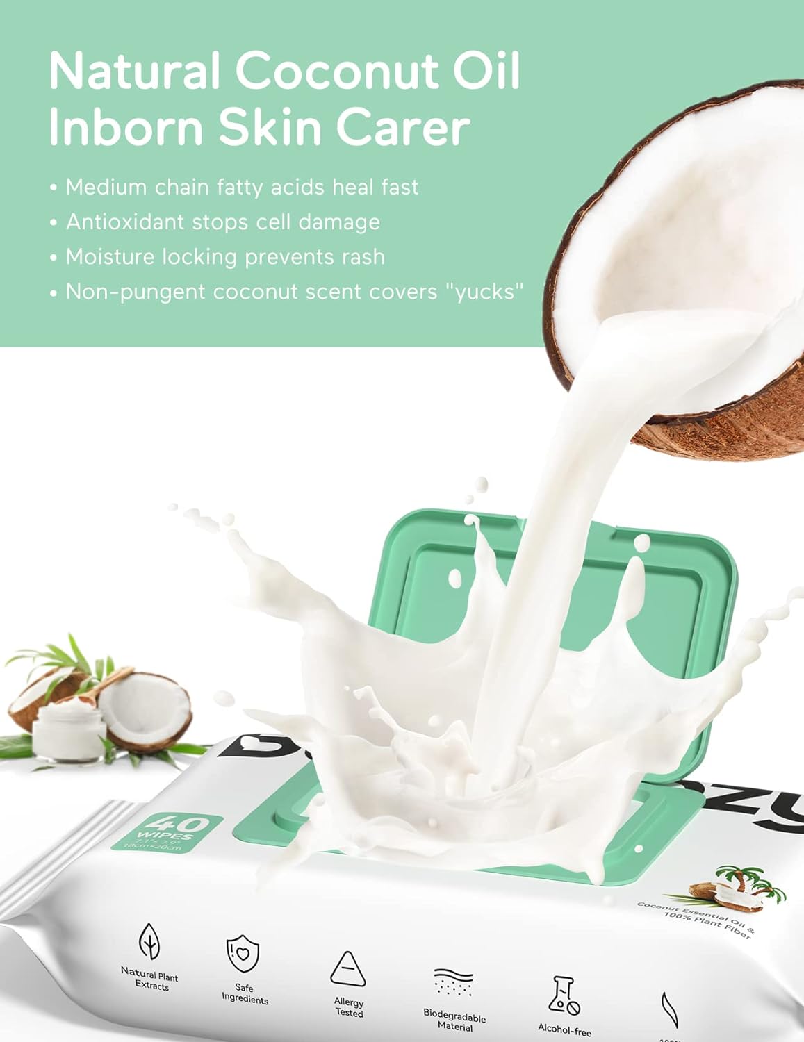 With natural essential coconut oil, these sensitive baby wipes can put up a “nourish shield” on baby's bum, to send and lock nourishment deep into the skin, thus preventing or reducing allergies and rashes. Plus, our nourish baby wipes have a tinge of fresh coconut scent. It's great for covering the smell of poop!