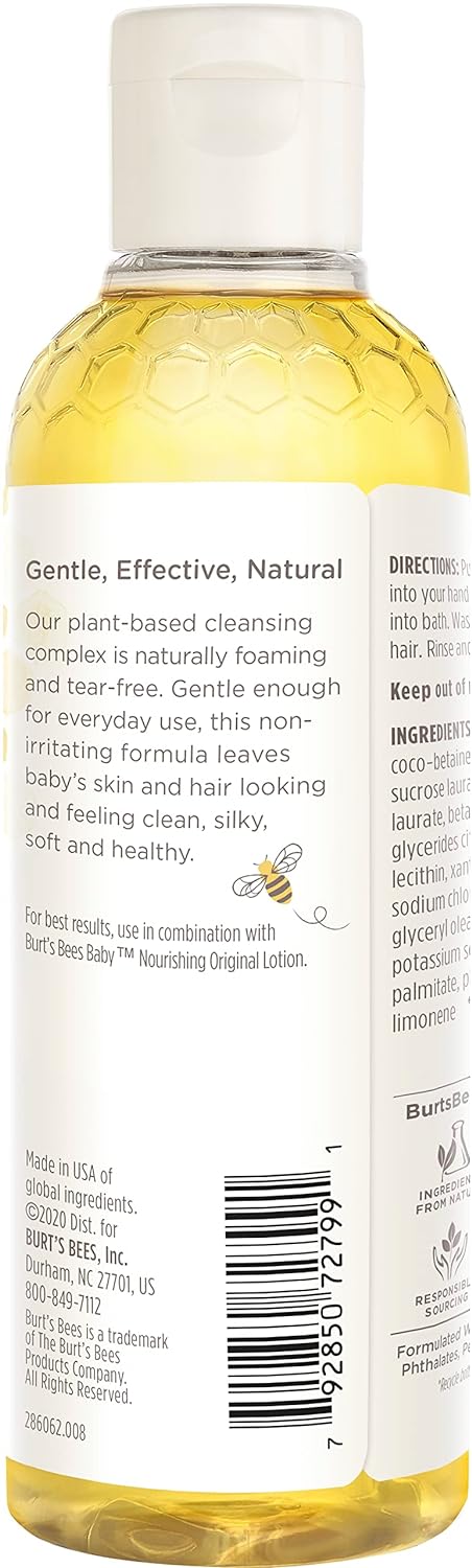 A tear free formula to naturally clean your baby's sensitive skin and hair. Burt's Bees Baby Shampoo & Wash is clinically shown to be gentle enough for everyday use. This naturally foaming, non irritating baby shampoo and wash is made with 99.9% natural, plant based formula containing soy proteins to leave your baby clean and smooth. Plus it is pediatrician tested and contains no phthalates, parabens, petrolatum or SLS.
